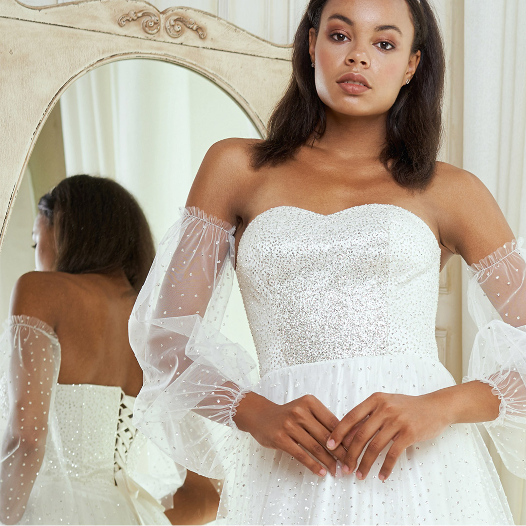 Ramcharan says, “We’re still taking safety precautions in the store like wearing masks, gloves, washing hands, and being mindful. Brides are still allowed to try on gowns because I want it to be as personal as possible. Regardless of what’s happening, my goal is not to take away from the experience that other brides have had in the past before the pandemic.”