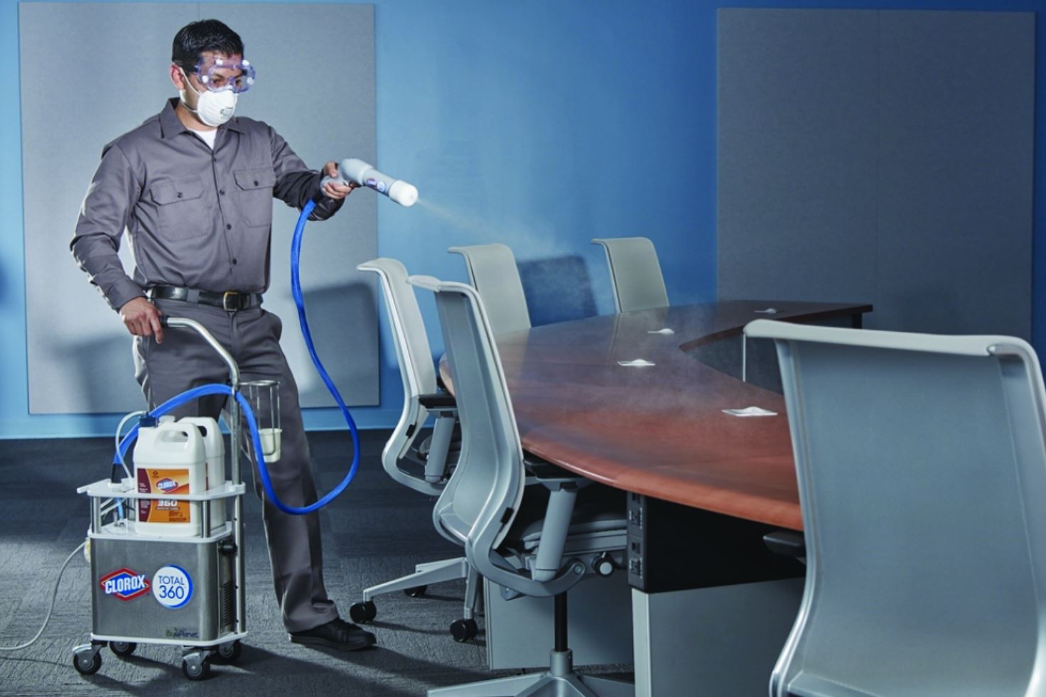 This method involves saturating an area with a fine mist of disinfectant solution that deposits on surfaces based on the direction of spray and the effect of gravity. After treatment, it takes approximately one to two hours for the mist to dissipate and the air in the room to return to breathable levels.